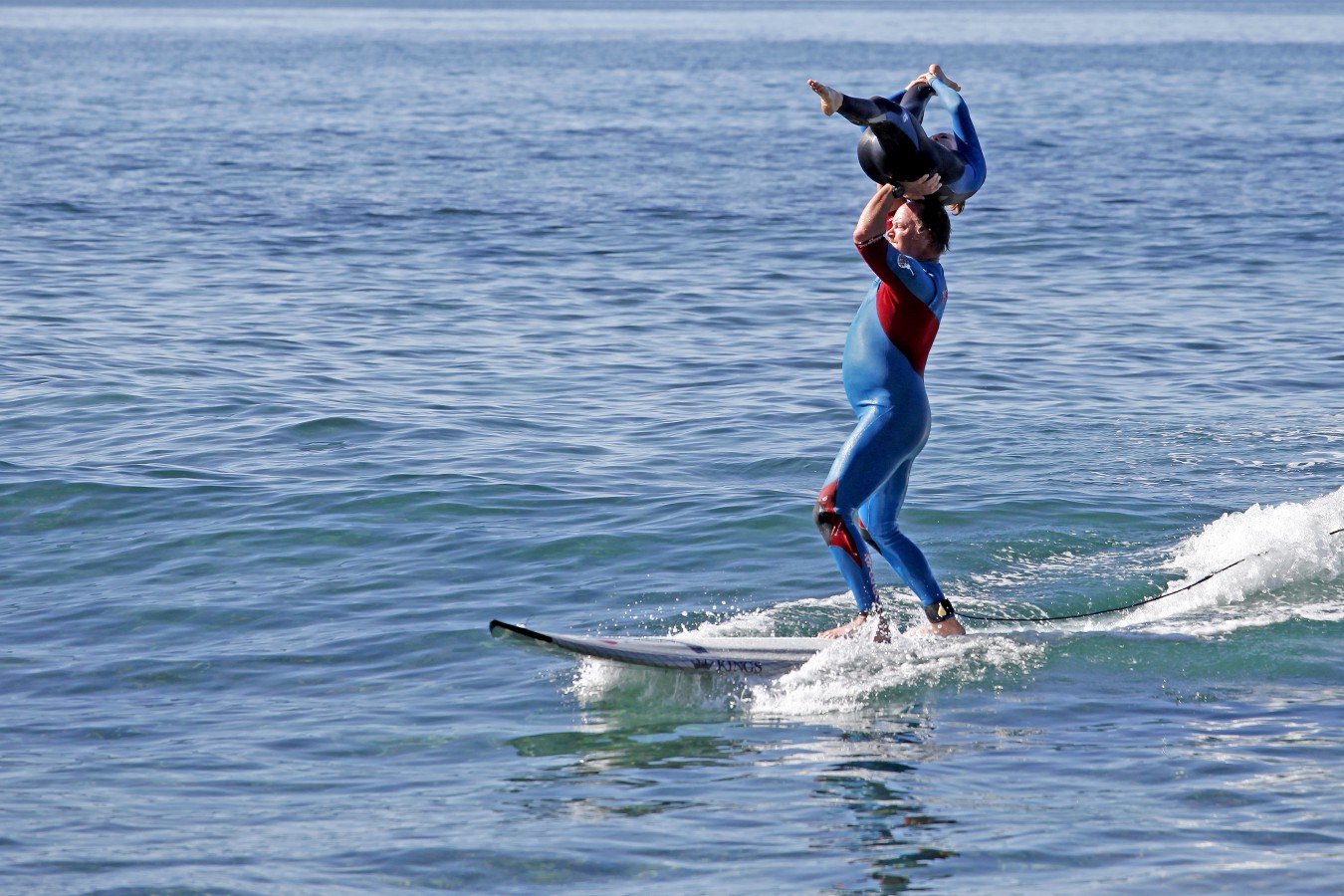 A few more tries and they only seemed to get better. They began practicing two poses on the same wave, which looked a real challenge considering how short the rides were.